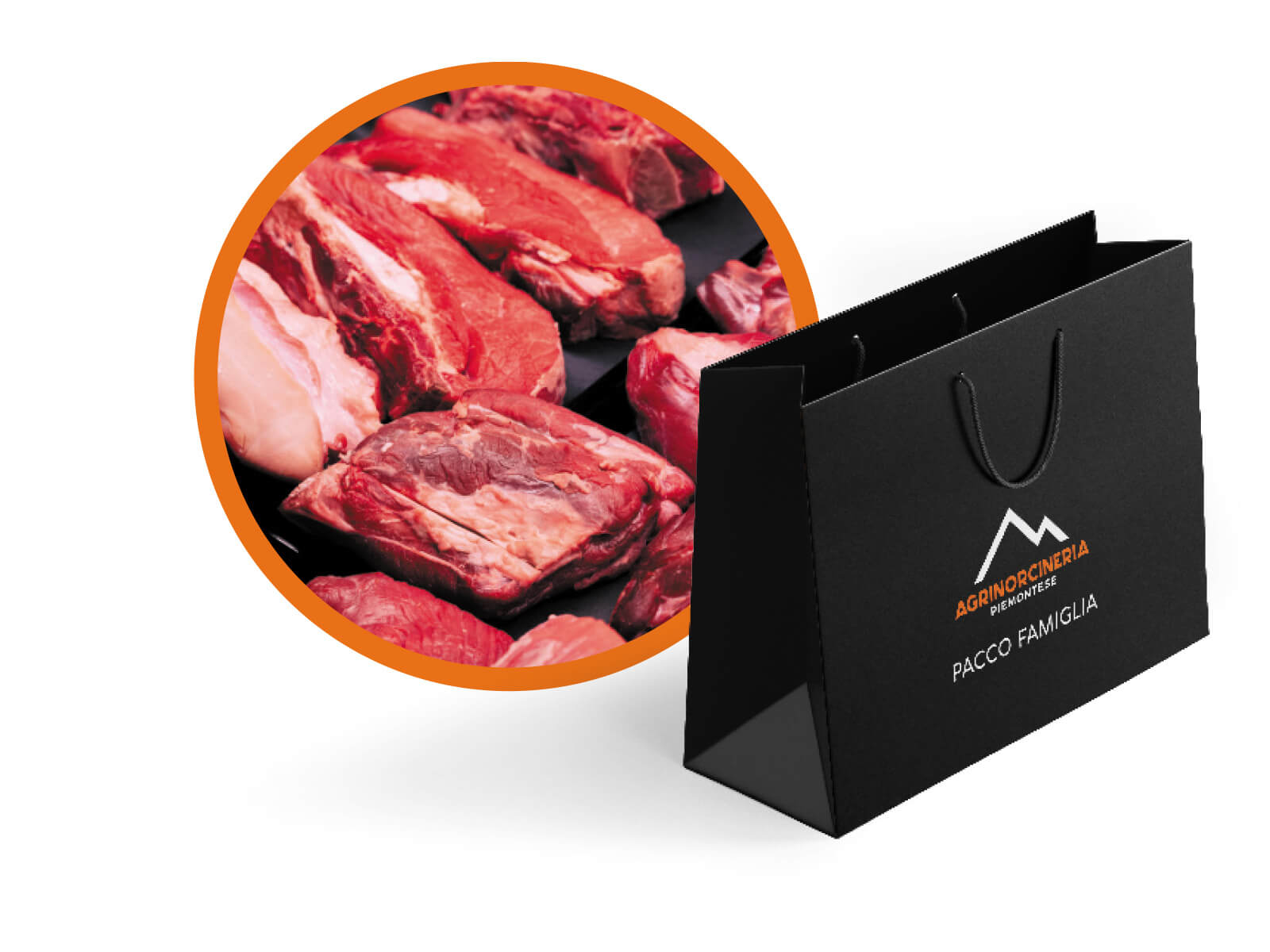 Pacco famiglia di carne di bovino femmina di razza piemontese a € 14,50 al kg, così composto:
