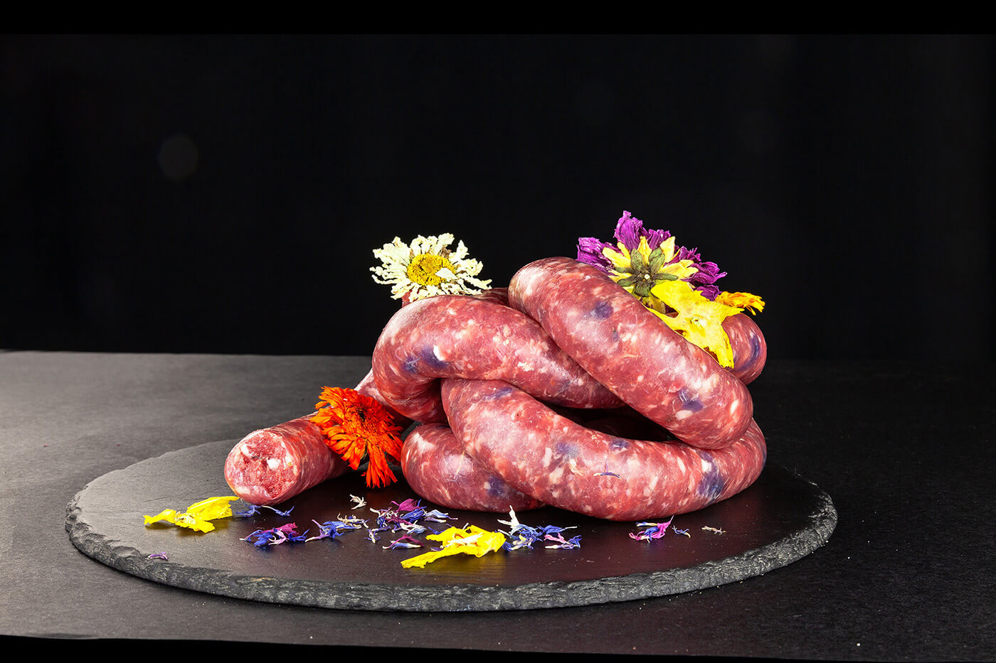 La nostra salsiccia di vitella e la salsiccia di maiale si arricchiscono con l’aggiunta di petali di fiordaliso biologici, disidratati a freddo per preservarne tutte le proprietà. Un processo che rispetta la natura e valorizza ogni ingrediente.